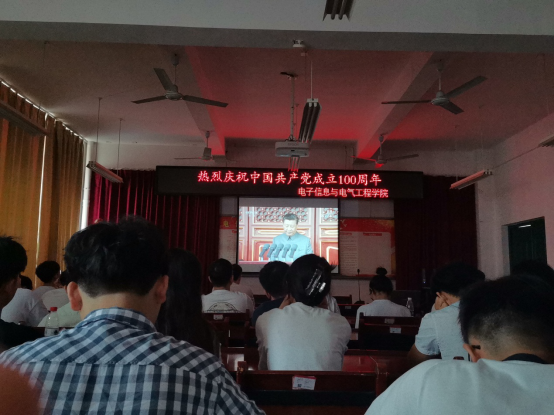 2021年7月1日上午8时,庆祝中国共产党成立100周年大会在北京天安门广场隆重举行。长沙学院电信学院学生党支部全体党员在理工楼B202会议室集中收看了大会直播。