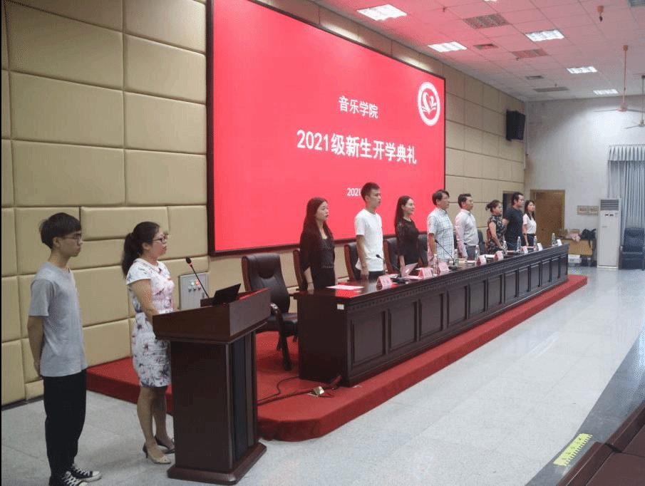朗朗金秋,丹桂飘香,长大又是一番新的气象。9月7日上午,音乐学院2021级新生开学典礼暨入学教育在学术报告厅举行。音乐学院院长李巧伟、副院长谢萍、副书记刘静、公共艺术教研室主任王琛媛、器乐教研室主任熊琦、教师代表聂卫华、余佳、温佐亮、王瑞洁、2021级班主任代表钟燕婷、陈艺芬、辅导员张腾、李璇及2021级全体新生共同出席此次开学典礼。开学典礼由音乐学院党支副书记刘静主持。