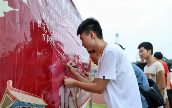 仪式最后,全体学生在国旗下庄严宣誓并在签字板上签名,致敬党的百年华诞,倾情表达爱国情、报国志,充分展现出土木学子拥抱新时代,树立崇高理想信念的决心。