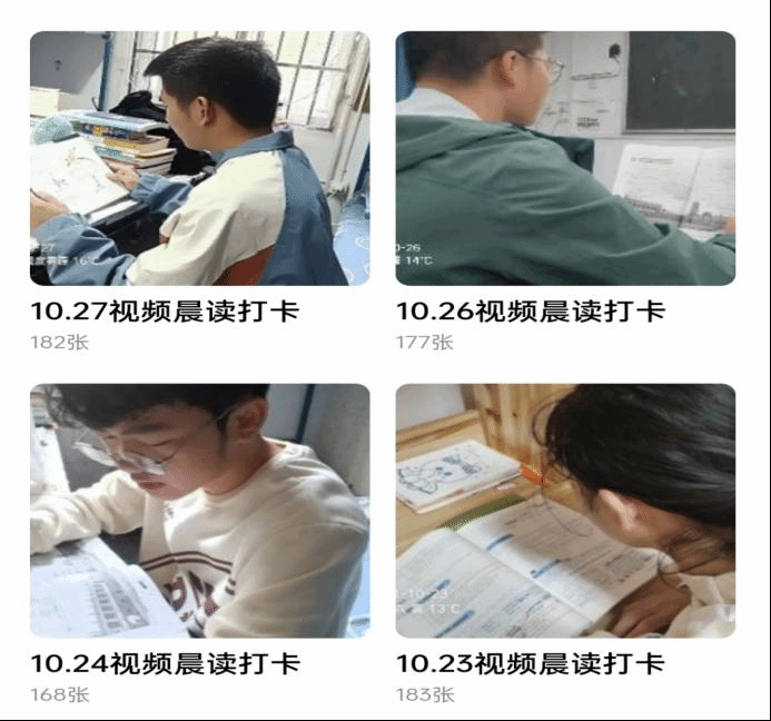 线下的班级晨读打卡则主要由青年传媒中心负责。每周一至周五,青年传媒中心的工作人员都会下到宁静楼的各个教室,拍摄班级的晨读视频。在活动中,我院学子都能以饱满的精神状态积极投入晨读学习,很好地展现了当代青年朝气蓬勃、活力十足的精神风貌。后续,学院成长辅导室将会进一步对班级晨读进行评优并给予表彰。
