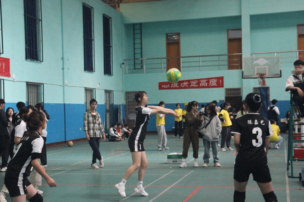 女排决赛,法学院对战经济与管理学院。比赛开始,球馆里热火朝天,击球声、加油声、叫喊声不时响起。第一局,双方队员相持不下,相互咬紧比分,漂亮的扣球,有力的颠球,力求每一次都做到最好。队员们同心协力,凭借默契的配合和过硬的实力在第一局制胜。“法学院,加油!”队员们乘胜逐北,互相鼓励,不断变换战术来应对对手,最终以二比零的比分一举拿下第一名。