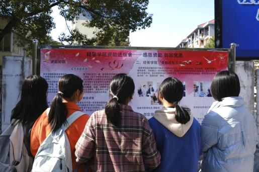 学生宣讲团队科普政策,受助学子诉说点滴感恩。经济与管理学院建立了一支由学生干部、受资助学生等组成的资助宣讲团队伍,由学生本人向同学与室友进行政策宣讲。学生特色宣讲,能够充分发挥学生的主体性作用,实现学生的自我教育和自我服务,达到资助宣讲“输血功能”向“造血功能”的转化。受资助的经管学子自发撰写感恩信,表达了对党、国家与社会主义的感恩之情。