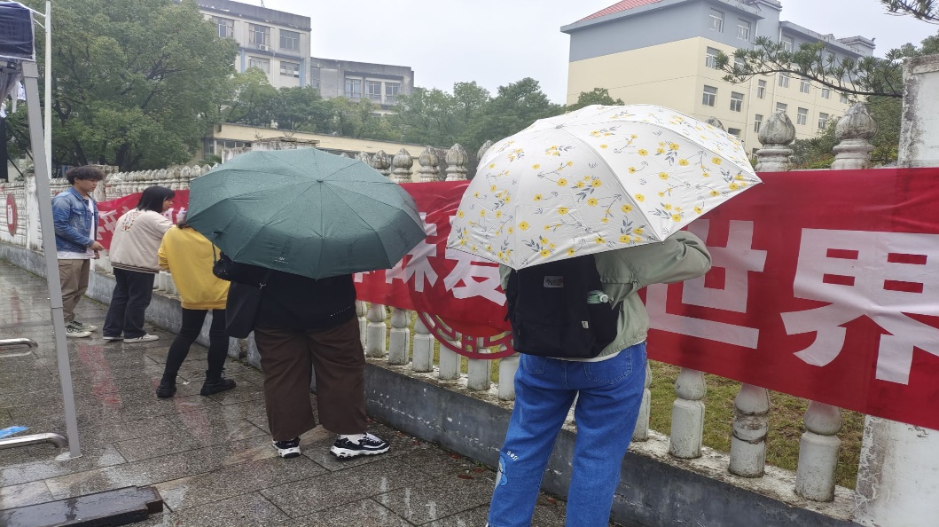 图四:同学们在横幅上签字