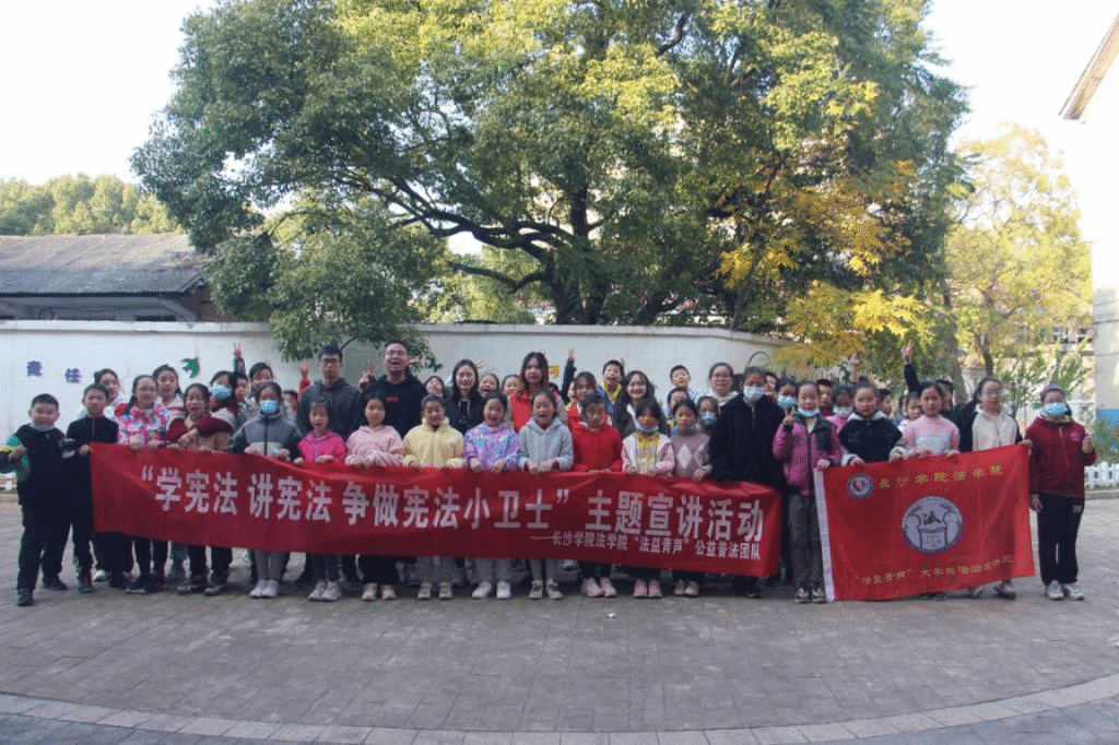 连日来,长沙学院法学院“法益青声”公益普法团队在指导老师的带领下,先后走进育德小学和浏阳河小学,为小朋友们宣讲宪法知识。