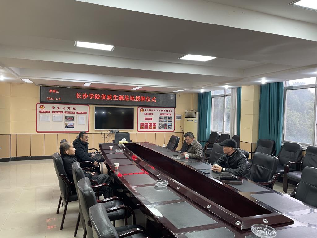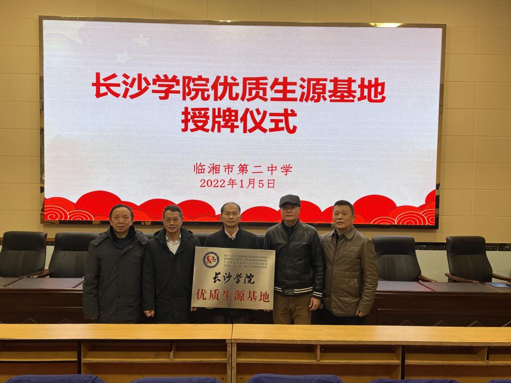 2022年1月5日上午,长沙学院计算机工程与应用数学学院(以下简称计数学院)院长李方敏、党总支书记曾一兵率队深入岳阳临湘市开辟招生市场,来到临湘市第二中学,受到了该校校长王良敏、党委书记卢取华、副校长许求保、党委委员李勤等校方同志的热情接待,并与临湘市第二中学签订了优质生源基地合作协议和举行了授牌仪式。