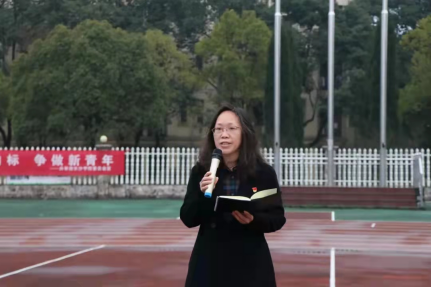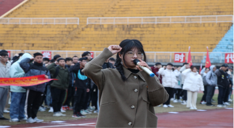 学生代表陶煌辉在国旗下激昂发言,“我们正处于一个伟大的时代,青年大学生应该把握机遇,铸牢理想信念之基,在建设国家的道路上发光发热,为实现第二个百年奋斗目标注入澎湃的青春力量。”