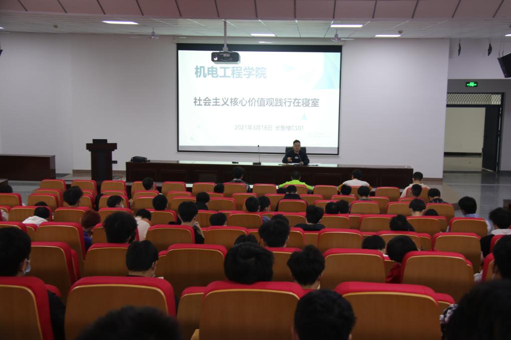 为筑牢、筑实学校疫情防控阵地,加强我院学生宿舍管理和宿舍文明建设,严格落实抓晚归、晚不归制度,积极响应《关于开展“社会主义核心价值观践行在寝室”的通知》(长大学工联发〔2022〕02号)要求,营造安全、健康、舒适、和谐的学习生活环境,3月18日中午,机电工程学院在长智楼C501报告厅召开全院生活委员、寝室长、外宿学生大会。学院宿舍管理专干、2020级学生辅导员柳佳柱以及院宿舍自主管理委员会所有成员、各年级生活委员、寝室长、外宿学生共200余人参加了本次会议,会议主要围绕疫情防控、校园劳动日方案、开展社会主义核心价值观践行在寝室活动等方面展开。