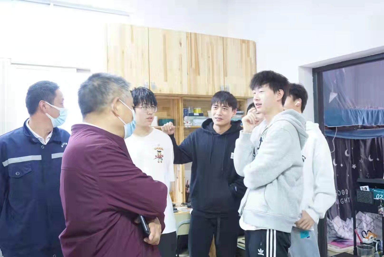 胡石明一行深入学生寝室,与同学们进行亲切的交谈——小到生活习惯,大到安全保障,近在疫情当前,远在计划未来。胡石明充分肯定并高度评价了学院的寝室管理工作和同学们展现出的良好精神风貌。同学们对老师们的关心纷纷表达感谢,也表示感受到了如初春阳光般的暖意,定将好好学习,不负韶华。