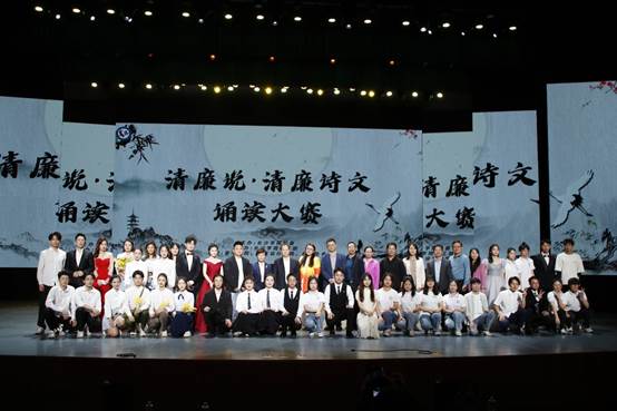 2022年5月3日晚,长沙学院清廉说·清廉诗文诵读大赛决赛在学生活动中心隆重举行。本次比赛由长沙学院纪委主办,党委学工部承办,应邀出席的嘉宾有校党委委员、纪委书记丁文、关工委常务副主任杨兴龙、纪委办主任贺革与各职能处室、二级学院负责人。共有来自不同院系的10个朗诵节目入围决赛,其中,节目《等待》和《清风诵廉,筑梦航天》来自外国语学院。