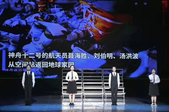 本次大赛外国语学院学生表现突出。林洛桦和林心阳的朗诵作品《等待》致敬了一生清廉、舍小家为大家的邓稼先,他们抑扬顿挫的朗诵和张弛有度的表演碰撞出震撼人心的舞台效果,聚光灯打在舞台中央,照亮许鹿希对稼先的不舍与等待,更照亮了邓稼先爱国为国的伟大与无私,热泪盈眶的观众跟随他们走近邓稼先的一生。刘文仪、汤小艺、邵杰、宋锴钧的原创朗诵作品《清风诵廉,筑梦航天》致敬了航天员汤洪波及为中国航天事业奋斗的航天人。满腔深情被盎然颂读,扣人心弦的故事被生动演绎,外国语学院国旗护卫队及《少年中国说》手势舞的加入为表演锦上添花,力与青春的交织,也是清正热血、一心报国的汤洪波奋斗之路的映射。最终《清风诵廉,筑梦航天》与《等待》分别斩获第一、二名的佳绩。大幕落下,比赛在聚光灯下的丛丛笑脸和观众雷鸣般的掌声中画下了完美的句号。