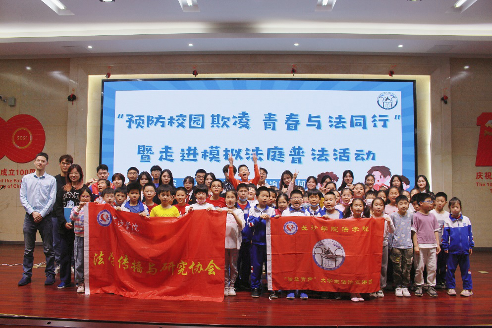 为了加强法治教育,提高学生自我保护意识,反对校园欺凌。5月17日下午,长沙学院法学院“法益青声公益普法团队”携手长沙学院“法学传播与研究”协会,来到长沙市浏阳河小学,开展“预防校园欺凌,青春与法同行” 公益普法宣讲活动。