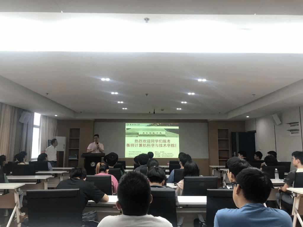 计算机工程与应用数学学院把高质量就业挺在前头,广泛挖掘资源做到引进来,5月26日14:50,通过研究生院的统筹安排,衡阳师范学院计算机科学与技术学院副院长赵辉煌教授、数学与统计学院副院长李浏兰教授组成的考研宣讲团专程来校,在致远楼1610召开考研院校宣讲会,计数学院19级考研学生共计60余人参加。