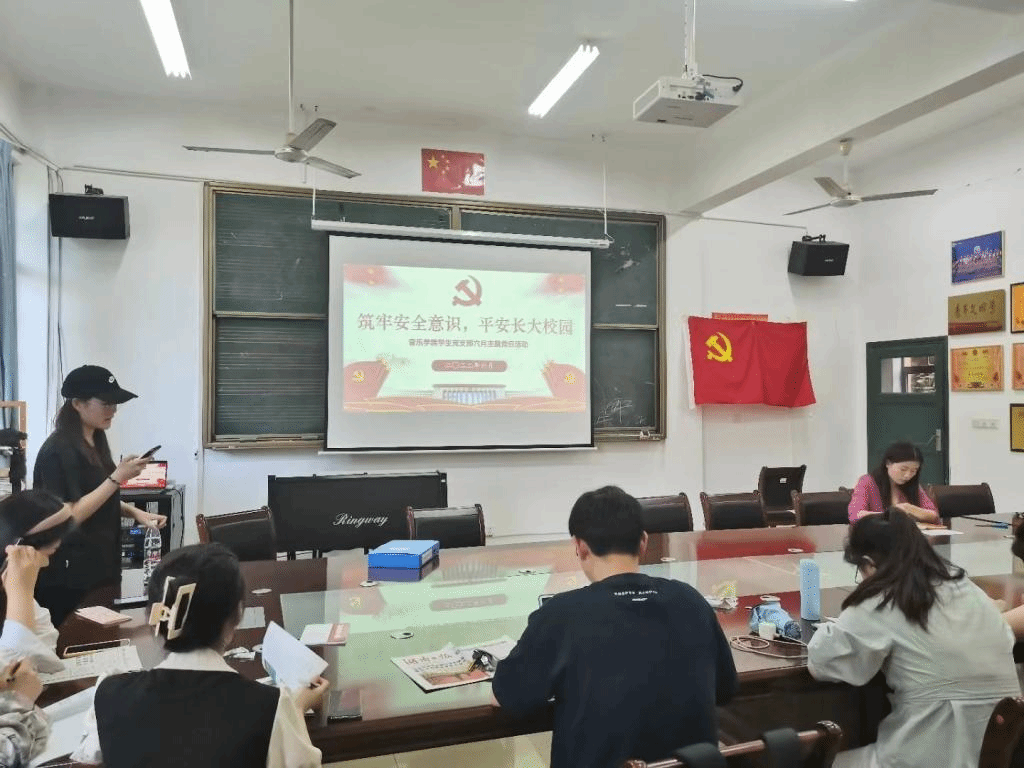 为切实落实习近平总书记关于安全生产重要论述精神,做好校园安全工作,让安全发展理念入脑入心。6月7日下午,音乐学院学生党支部在音乐楼105开展“筑牢安全意识,守护平安校园”主题党日活动。会议由支部书记李璇主持。