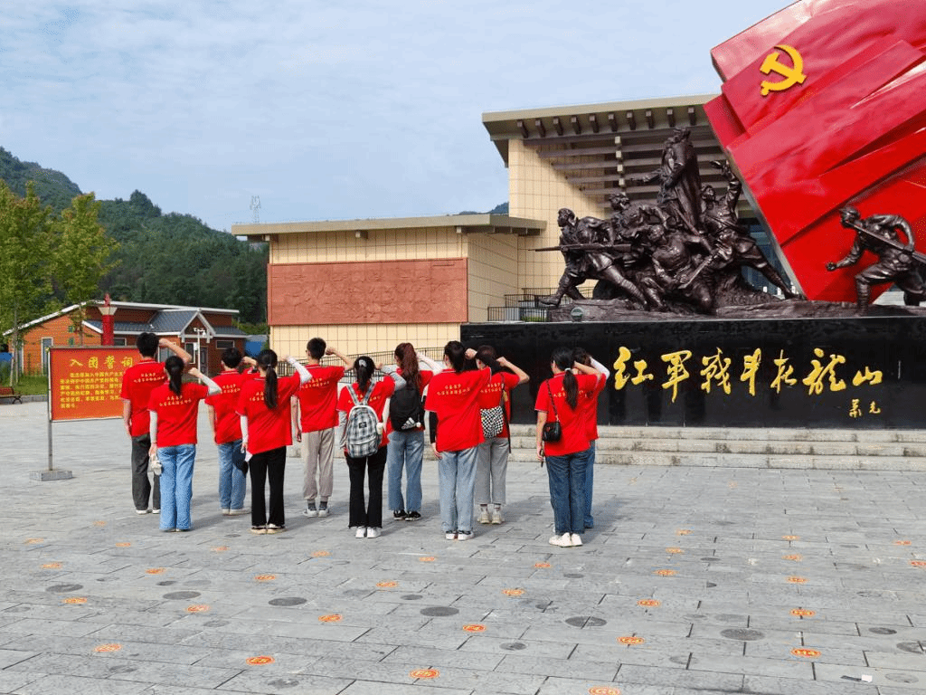 在调研过程中,团队成员在“红军战斗在龙山”大型雕塑前重温了入团誓词,践行行走的思政。在湘鄂川黔革命根据地纪念馆和陈列馆中,全体队员观看了文史资料、照片以及红军标语,回忆了贺龙、任弼时等老一辈无产阶级革命家创建湘鄂川黔革命根据地的光辉历程。