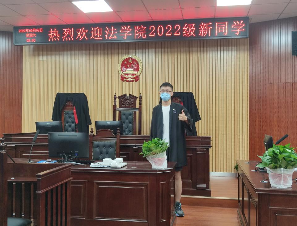 办完报到点的手续后,新生们前往学院模拟法庭试穿法袍、拍照打卡,领略法律的魅力,体会法学的庄严。新生们纷纷表示,在参观模拟法庭之后,对大学专业学习更加期待与憧憬。