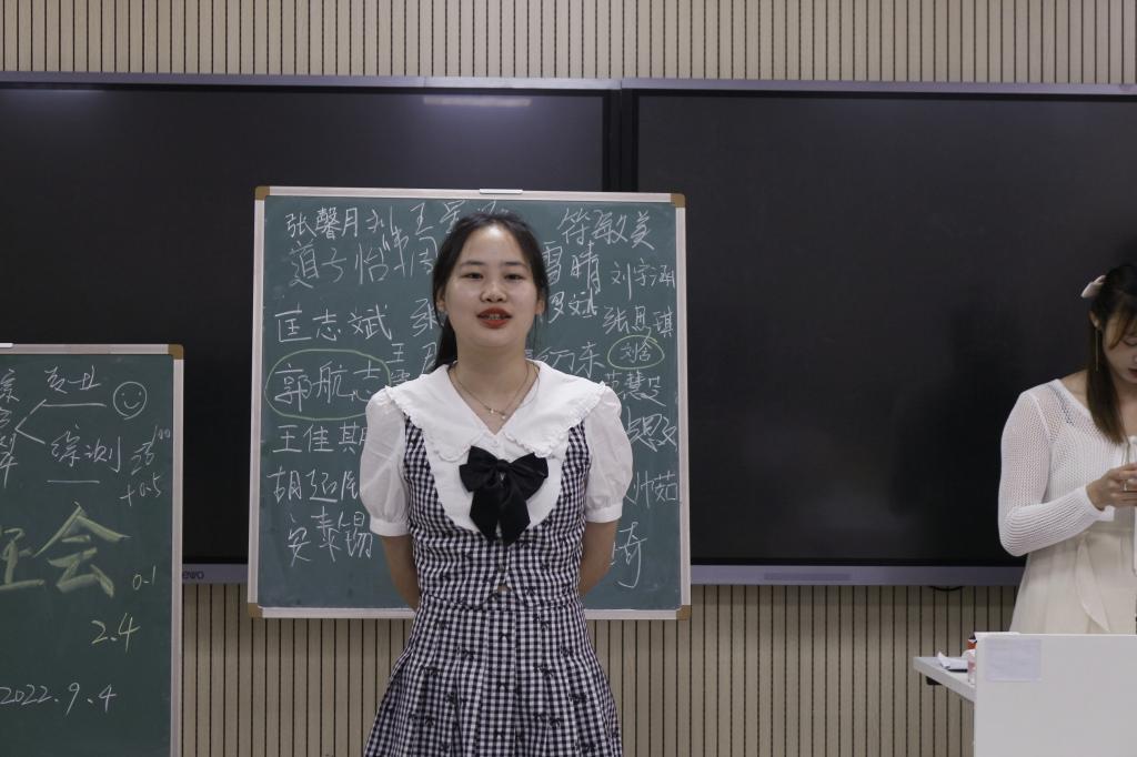 此外,22级各班班导班助积极有效发挥朋辈引导作用,组织新生各班于9月4日下午,围绕校纪校规、军训前准备工作、安全防范等事项分别召开了第一主题班会,班主任到场指导、见面。“发现光,追随光,成为光,散发光。”是2202班班助陈嫣妍对新生的寄语,旨在勉励新生尽快适应大学生活,砥砺奋进、不负韶华。