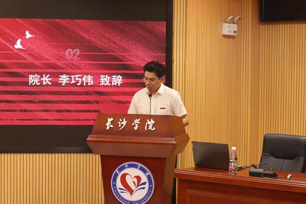 典礼在庄严的国歌中拉开帷幕。院长李巧伟在开场致辞中首先对新同学的到来表示热烈的欢迎。李院长向同学们详细介绍了音乐学院的办学历史、师资力量、教学设施及专业特色,并从“知音”、“好音”、“乐音”三个层次,给同学们生动地介绍了专业学习的三个阶段,告诫大家要把学问做在祖国大地上,做在人民的美好生活向往里,才能有深度、有温度,有广度,才能过上以音乐为乐的艺术人生。