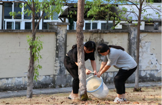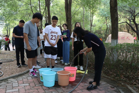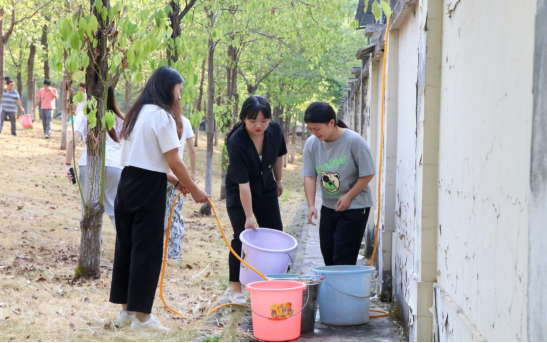 经过紧张忙碌的早上,理工楼A区附近的“土木林”焕然一新,师生党员们脸上流着汗,心里却是甜甜的。“土木林是学院特色德育实践基地,汇聚了师生的深情与梦想,见证了莘莘学子的成长成才,守护这片绿,是对师生砥砺奋进的守护和传承,为树苗浇水,师生党员身体力行为大地增添绿色,发扬了不怕苦、不怕累的精神。”党总支书记杨群英深情地说道。