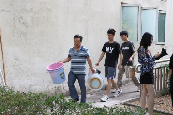 上午8点30分,学院党建组织员杨筱球拿起浇水工具投入到劳动中去,并指引大家:“等一下浇水的时候,每棵树至少浇两桶水,从树的根部慢慢浇,让树苗真正的喝饱水”。大家精神抖擞相互配合,有的提桶,有的接水,我舀水,你递水,他浇水……,密切协作,配合默契,按照规范要求操作,每一道工序都做得十分认真,确保每棵树喝“饱”了水,解足了“渴”。
