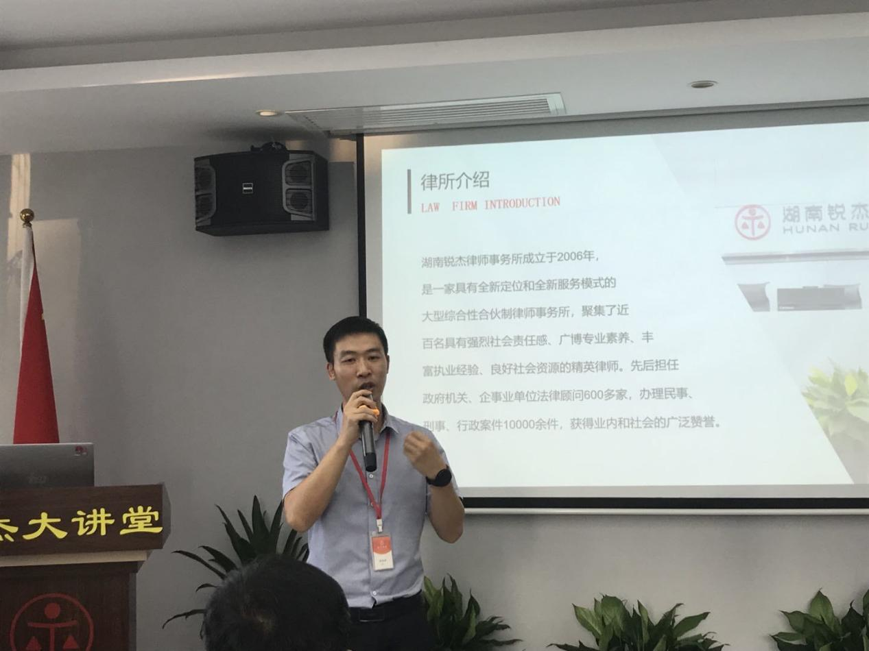 最后,廖生成进行了总结。他首先感谢湖南锐杰律师事务所给予同学们进行参观交流学习的机会;期望同学们能够从此次沉浸式的体验活动中有所感悟,有所收获,为职业发展打好基础;同时,他也邀请律所及律师们抽空到法学院开展学术交流、文体活动等。