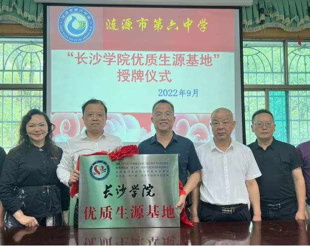 舒欣书记为涟源市第六中学授“长沙学院优质生源基地”牌匾