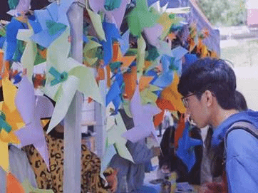 从十月十日七点半开始,精卫日活动在维智广场和洪山二食堂旁同时开展。外国语学院心理部成员提前为大家准备了象征着中国精神卫生标志的绿丝带和色彩斑斓的卡纸,后与摆点志愿者们一同在活动现场指导同学们如何用彩纸折风车,并向同学们示范如何将绿丝带贴于风车中央且用夹子固定到挂绳处。暖风拂过,同学们的脸上洋溢着幸福的笑容,象征着健康和爱心的绿丝带与五彩风车一起随风舞动,这些风车携带着同学们的热情与激情,为长大校园又增添了一抹不同的色彩。
