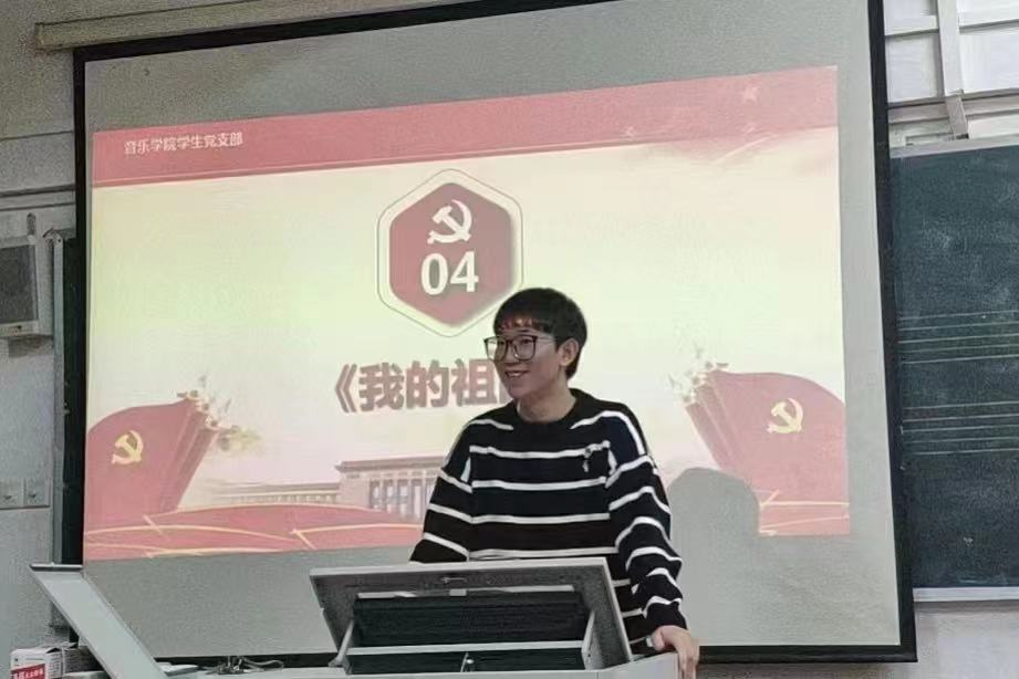 音乐楼255室再次响起了嘹亮的歌声。学生党员周洋带领22音乐2班同学,以党的二十大报告导入,并用《没有共产党就没有新中国》等五首经典歌曲合唱以及相关视频贯穿其中,让同学们认识到作为新时代的青年文艺工作者要坚定文化自信,努力创造出优秀的艺术作品!