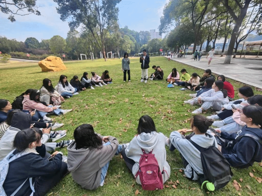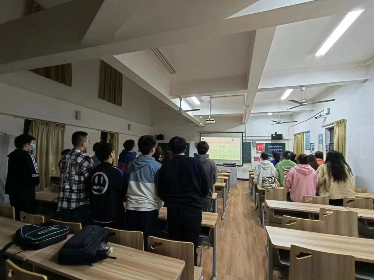 22舞蹈1班“峥嵘百年光辉历程”主题班会在长盛楼前坪草地开展,音乐学院学生党员邹颖超带领同学们学习“六个必须坚持”和“五个重大原则“。会议期间邹颖超与同学们分享党史故事,认识中国共产党创立初期时之艰辛,让大家对中国共产党有了更深入的理解。