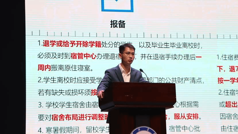 首先,周欣老师详细介绍了“心语小屋”省级特色成长辅导室的辅导领域和辅导方式,为大家送去成长的祝福,希望每一位同学都能成为一名自信、快乐的电信人。接着,谭宏政老师讲述了大学生入党条件和入党流程,鼓励2022级学生不断加强学习,积极向党组织靠拢。谢力老师概述了宿舍管理工作主要内容,强调宿舍安全用电、环境卫生、禁烟控酒、晚归督查等重点工作,希望全体新生能遵守校纪校规,严格要求自己,做到“一周一扫除,一日一保洁”。蒋亮森老师对于大学生奖、助、勤、贷、免的工作做了详细解读,期盼同学们能够感恩政府,奋发图强,争取早日回报祖国。随后,聂云志老师向全体新生介绍了团总支学生会的组织架构与功能、“东来阁”讲坛等特色校园品牌活动,鼓励大家积极参加各项集体活动,培养和发展团队合作精神、提升职业素养。最后,江艳书记给所有新生上了一堂精彩的学业规划讲座,她从“如何上大学”这个问题出发,引导同学们尽快适应高中向大学的转变,合理规划大学生活,加强培养自主的学习能力,珍惜时间,全面发展,让自己度过一个值得骄傲的四年。