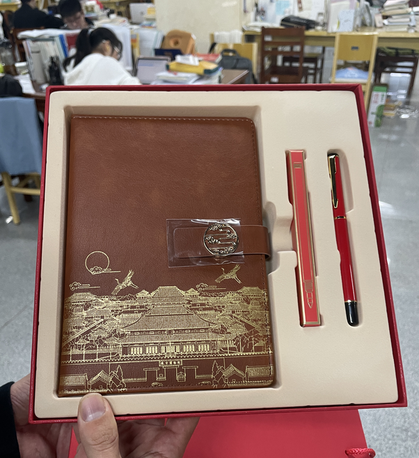 “学院的辅导员很暖心,把礼品送到了自习室,打开一看是印有故宫博物院封面的文具,十分精致!”19软件01班王淼同学在自习室收到了礼物激动地说。学院的暖心礼品极大的激励了考研学生刻苦复习、一心上岸的信心、决心、雄心,也被众多同学刷了屏。