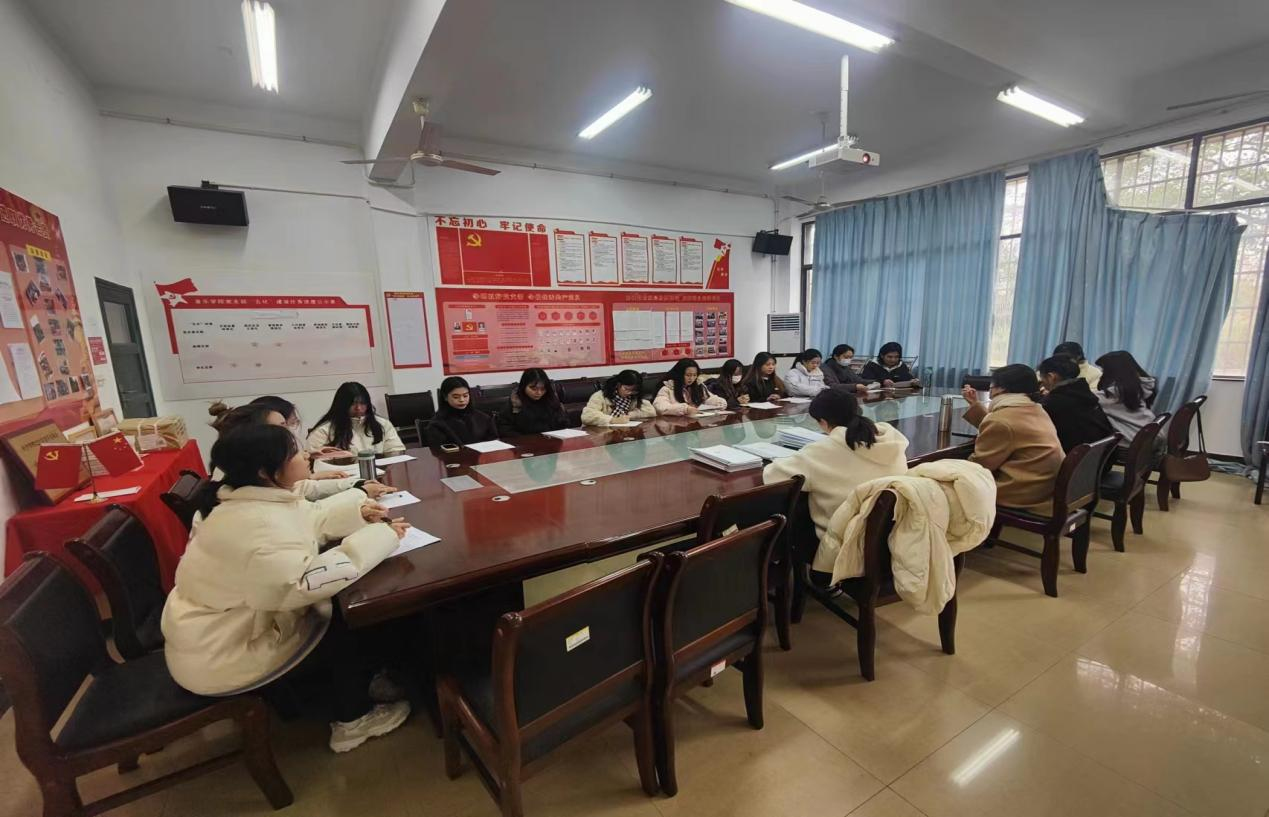 为深入学习贯彻党的二十大精神,催人奋进,深学细悟凝共识,12月6日下午,音乐学院学生党支部在音乐楼105教室召开主题党日活动,全体党员参加。活动由支部书记李璇主持。