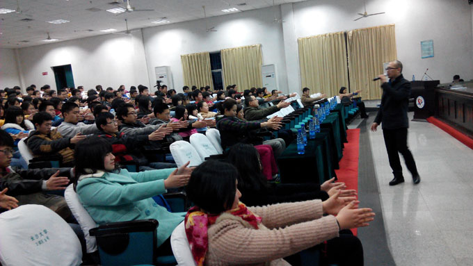 讲座最后,刘医生对现场五百名观众进行了催眠,帮助观众们放松身心,调整心理状态。此次讲座使同学们走近了催眠,了解了催眠,也吸引了更多同学关注心理健康,提高心理素质。