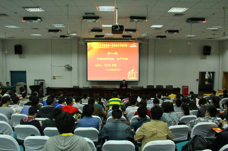 开班典礼后,韦成龙书记给入党积极分子讲授了第一堂党课——《坚持党要管党,从严治党,切实加强新形势下党的建设》。他从加强党的建设的必要性,加强党的组织建设的重要内容和新时期党要管党、从严治党的新思想新要求等三个方面进行了深刻阐述,并即兴演唱了一首红歌。韦书记通过丰富生动的授课方式,带领学员们一起回顾了各个重要历史时期党在加强自身建设方面的政策和举措,特别是认识和了解在当前新的历史形势下,党在加强思想建设、组织建设、作风建设、反腐倡廉建设、制度建设等方面的重要内容与新观念、新做法。