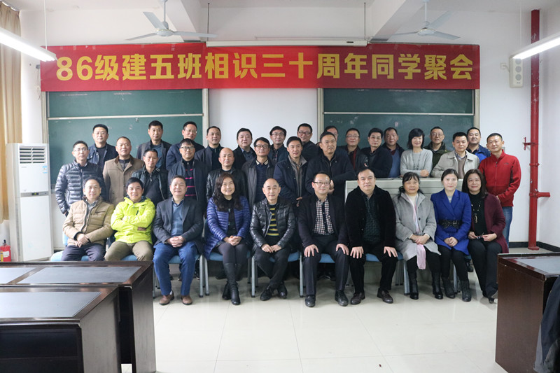 这是12月3日上午在理工楼A303举行的86级建筑五班相识三十周年同学聚会的现场,土木建筑工程系党总支书记张跃佳、系副主任匡希龙、系党总支副书记盛旺、系部教师出席了本次聚会,参与本次聚会的还有从五湖四海赶回来的86级建五班的35位学生。聚会由86级建五班班长黄文俊主持。