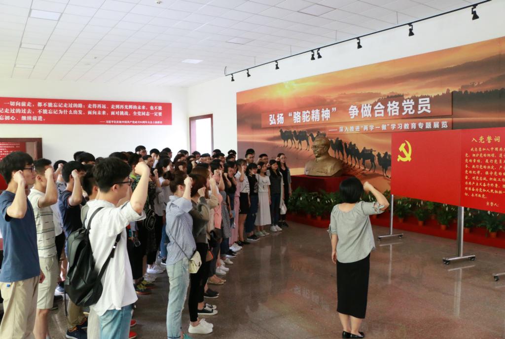 在任弼时故居,大家在讲解员的带领下逐一参观了其生平展览室。任弼时同志一生只有“三怕”:一怕工作少;二怕麻烦人;三怕用钱多。在身体健康状况不好的情况下,他依旧每天坚持工作到深夜,在建团、建党、建军、建国四个方面的都曾立下丰功伟绩,被叶剑英称赞为“人民的骆驼”。在“两学一做”展览馆中,全体师生党员重温入党誓词,在党旗下庄严宣誓,做合格的共产党员。