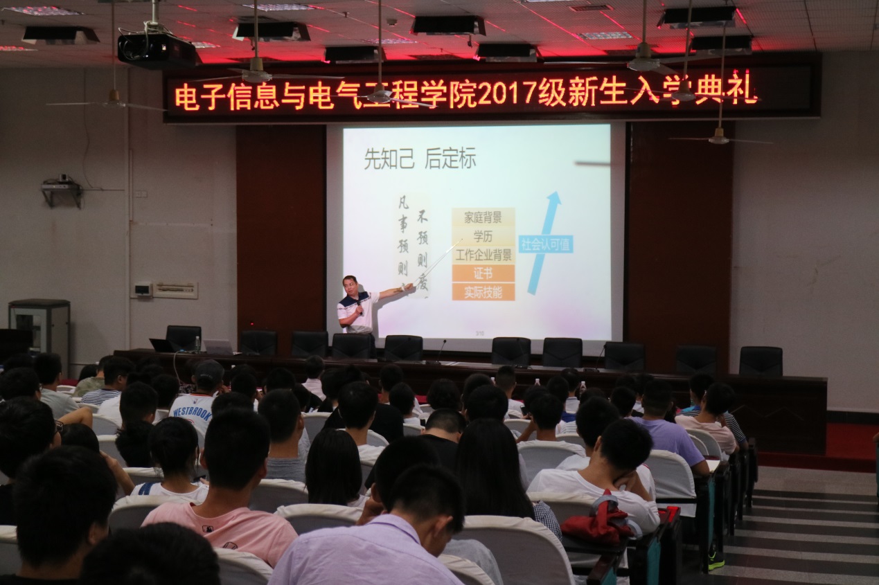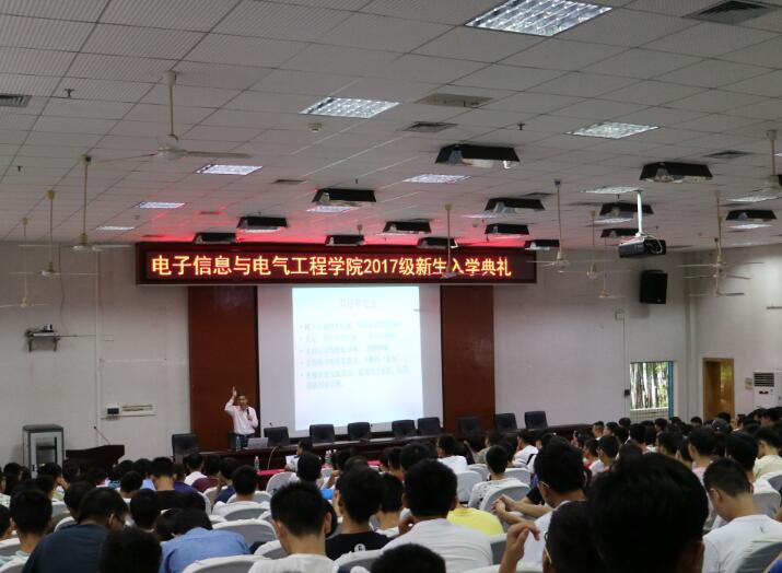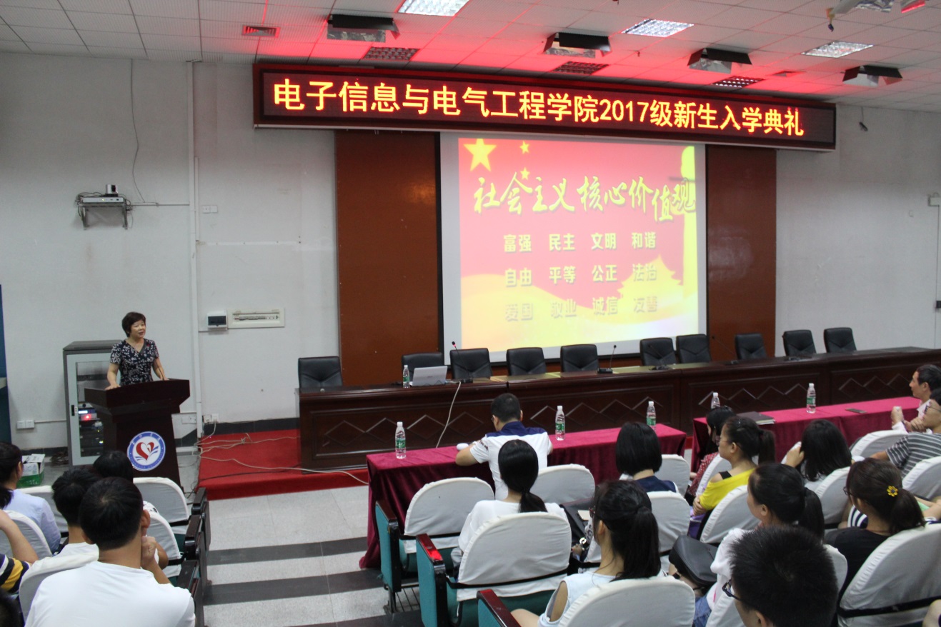 9月12日上午,电子信息与电气工程学院2017级新生入学典礼在致远楼学术报告厅隆重举行。电信学院院长刘光灿,党总支书记石学兰,电子信息工程教研室主任龙英,通信工程教研室副教授苏钢,学生辅导员江艳、黄佳佳以及17级全体新生出席了会议。会议由江艳主持。