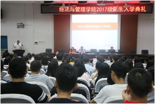 9月11日上午,经济与管理学院在致远楼学术报告厅分两批次举行了2017级新生入学典礼。经济与管理学院院长李映辉教授,副院长曾广录、郭红卫,党总支副书记王永启,各级辅导员、专业教师及2017级全体新生参加了典礼。典礼由副院长郭红卫、曾广录主持。