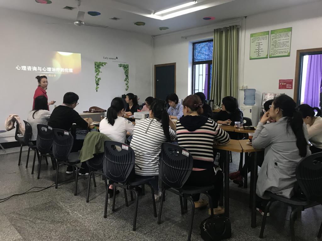宋颖老师分享的题目是《心理咨询和心理治疗的伦理》,她首先从日常心理咨询的边界问题着手,抛出了一些心理咨询常见的伦理问题,例如是否应该加学生微信、收学生小礼物等细节问题。紧接着宋老师重点从四个板块系统阐述了心理咨询伦理应该注意的问题,这四个板块分别是专业伦理教育的目的、中国心理学会临床与咨询工作伦理守则、伦理困境的基本态度、伦理的决策过程。最后,宋老师叮嘱老师们不要轻易使用大众媒体,时刻保持伦理意识的敏感性,必要主动寻求帮助。向伟老师分享的题目是《绘画心理分析与心理咨询》,首先他要求每一位老师在A4的纸上画一个主题画—“树”,作为本次分享的导入,向伟老师结合老师们手中所画的树讲解了绘画心理的原理和绘画心理的实操,即我们拿到一副画应该怎么去进行绘画分析和绘画咨询,分享过程中,老师们还就绘画分析的疑难问题进行交流讨论。交流中,向伟老师还向老师们推荐了几本国内外经典的绘画心理学著作。两个主题的培训分享都给我们的实践工作带来了重要的指导意义。
