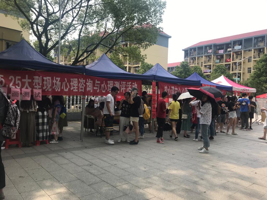 路过的同学们陆续被本次活动吸引,在现场咨询环节中,同学们向各位老师倾吐烦恼、寻求帮助,面对同学们的职业规划、学习压力、情感困惑、情绪调节、人际相处等多方面的问题,在场的咨询老师们热情耐心地为同学们分析讲解,从专业角度为同学们提供合理的建议和引导,对于参与心理测评的同学也一一根据所填问卷结果进行科学解释;而学生最感兴趣的“房树人”绘画测试和添加画测试则吸引了大批好奇者排队,咨询老师通过对学生在A4纸张上随意画出的树或屋树人的图画分析,指导他们从不同的角度了解自己,认识自己,重塑自我,理清发展思路。