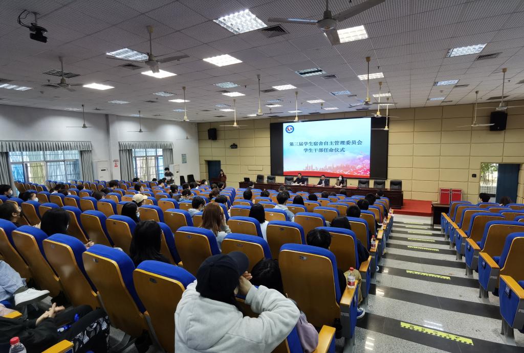 11月1日12点,第三届学生宿舍自主管理委员会学生干部任命仪式在致远楼学术报告厅隆重举行。学工部负责人,宿管中心老师,学院宿舍工作专干,园区主管,学生宿舍自主管理委员会全体成员及各学院生活部部长参加仪式。任命仪式由学工部宋颖老师主持。