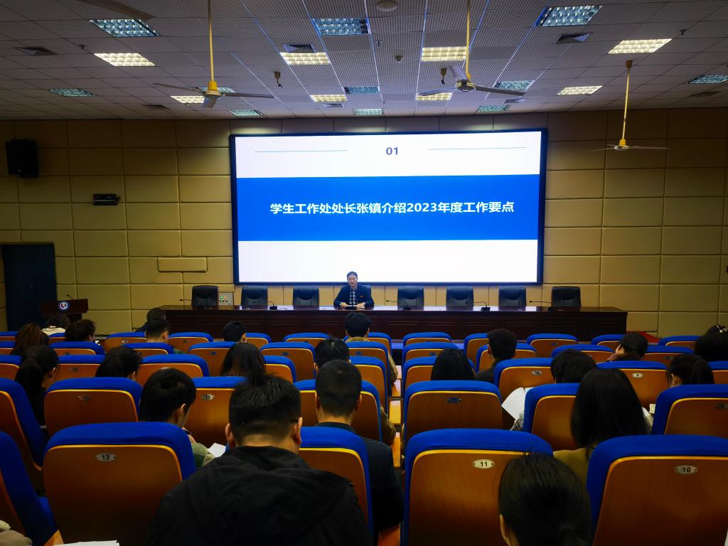 会上,学工处处长张镇围绕《2023年学生工作处工作要点》,明确了本年度学生工作重点,并对辅导员个人发展与队伍建设提出了具体要求。学生工作处副处长胡小毅、李素娟分别对近期宿管、资助、学风、心理与队伍建设等方面工作的开展进行了细致布置。