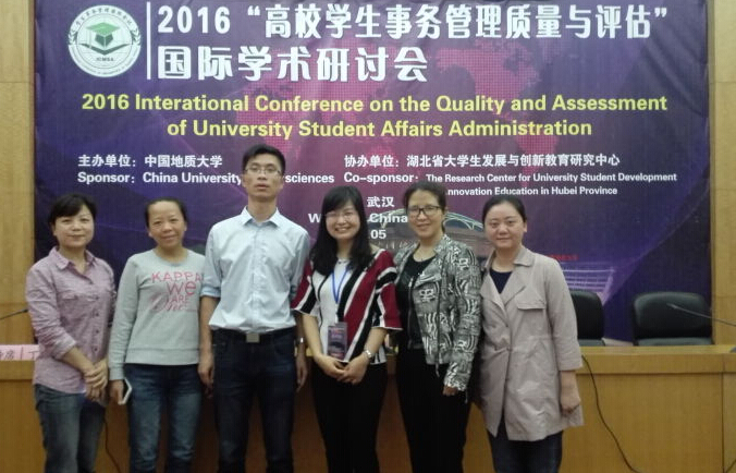 5月27-29日,中国地质大学(武汉)举办“学生事务管理质量与评估”国际学术研讨会,我校学生工作部(处)副处长姜巧玲带领外语系党总支副书记王艾红、数学与计算机系党总支副书记王芳,音乐系党总支副书记符勤、电信系辅导员江艳和生环系辅导员史文华前往参会。
