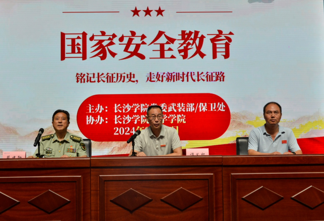 近日,长沙学院学生活动中心不时爆发出阵阵掌声。由学院党委武装部与数学学院携手举办的国家安全教育活动在这里举行。活动由数学学院党总支书记谭义红主持,全校千余名新生参加了此次活动。