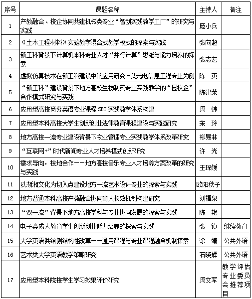 2017年湖南省普通高等学校教学改革研究立项项目名单: