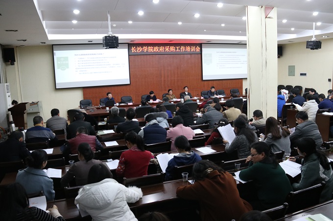 为提高我校政府采购相关工作人员的业务素质,进一步规范我校政府采购行为,提升我校政府采购效能和服务质量,12月13日下午,学校在图书馆一楼会议室召开了2017年政府采购工作培训会议,会议邀请了长沙市政府采购监督管理局孙勇江局长、管理科成峰科长、监督科柳昊副科长来校作业务培训和政策咨询与解答活动。会议由王永宏副校长主持,参加会议的有各二级单位(含附中)行政主要负责人、报账员和科研项目、平台负责人以及关心政府采购工作的老师。