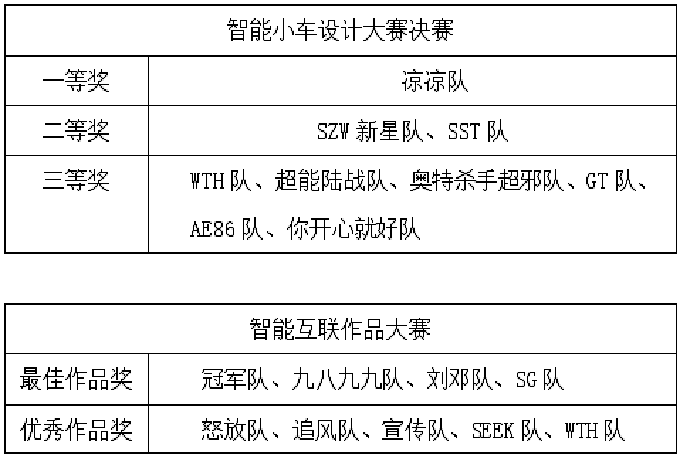 经过激烈角逐,智能小车设计大赛共有9组队伍获奖。智能互联作品大赛则评出了四个“最佳作品”。智能小车设计大赛SZW新星队队员王帮松表示:“通过这次比赛,我对自己的专业学习更加有信心了。只要肯花时间,就一定能学会。” 据悉,本次比赛由长沙学院教务处、科技处与校团委联合主办,电信学院承办。电信学院党总支书记石学兰、党总支副书记胡小毅、辅导员江艳等一同到场观看。