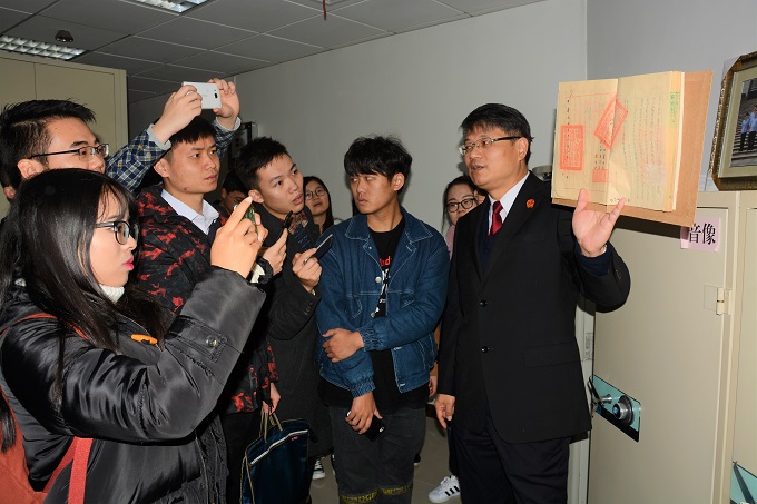 湖南省高院新闻发言人李宇先带领我校法学院师生参观档案室