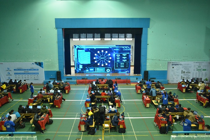 上午九点,决赛准时开始。从初赛中脱颖而出的国防科技大学、中南大学、长沙学院、雅礼中学等15所学校代表队同台竞技,上演了一场“没有硝烟的战争”。各入围学校派出的代表队由6位精兵强将组成,其中教师不少于1人。比赛从上午开始,持续8小时,参赛队员须自带电脑和相关软件,接入大赛提供的网络环境进行答题。