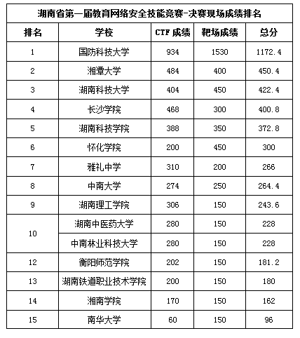 记者注意到,现场还设置了医疗、冷饮食品等服务区。持续八个小时的比赛对参赛选手的脑力、体力都提出了不小的考验。我校代表队一名选手表示,虽然比赛时间很长,但真正进入攻防较量的状态后会变得很享受这个过程。“感觉特别刺激,我们在比赛的过程中遇到了很多前沿的问题,都一起解决了。相信以后能够更好地为学校的网络安全服务。”他说。经过八个小时的激烈比拼,最后,国防科技大学代表队摘得大赛冠军,湘潭大学、湖南科技大学、长沙学院、湖南科技学院、怀化学院等代表队紧随其后。来自雅礼中学代表队的高中生们敢打敢拼,引起全场瞩目,获得组委会颁发的特别鼓励奖。