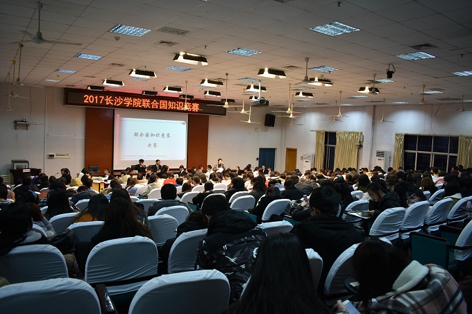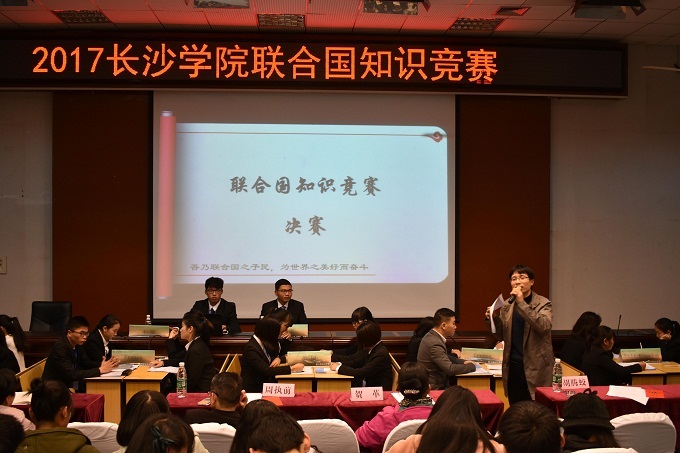 11月30日晚,由马克思主义学院、校团委联合主办,模拟联合国协会承办的2017年长沙学院联合国知识竞赛决赛在致远楼学术报告厅顺利举行。7支队伍通过初赛选拔进入现场角逐。马克思主义学院院长周执前、党总支书记贺革、纲要教研室主任张颖华、模联协会指导教师吴晓春、胡腾蛟、模联协会前任会长邬佳玲应邀担任评委。
